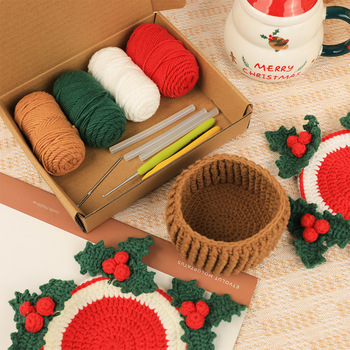 Christmas Crochet Kit for Beginners Coasters Cup Sleeve Gift Set Crochet Starter Kit with Video Easy Crochet Yarns Accessories